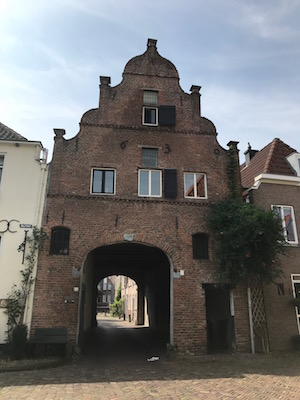 Wednesday was another ambling around Deventer day. Irina and I went off to various shops to pick up so specialty cheese and wurst to take to Sara & Co. on my next stop. (Also some cheese for me to take home, once I'd verified that their packaging technique would pass customs.) Then just more wandering with tour guide: tracing the old city walls (both the earthwork built against the Vikings and the medieval stone wall that can still be seen in fragments and lasted into the early 17th century (IIRC). Met the rest of the household at De Rode Kater (The Red Cat) for lunch, which was also where Irina and I returned for dinner. We also enjoyed a long pleasant evening on the rooftop patio, watching the bat go after insects and discussing books and philosophy and whatnot.